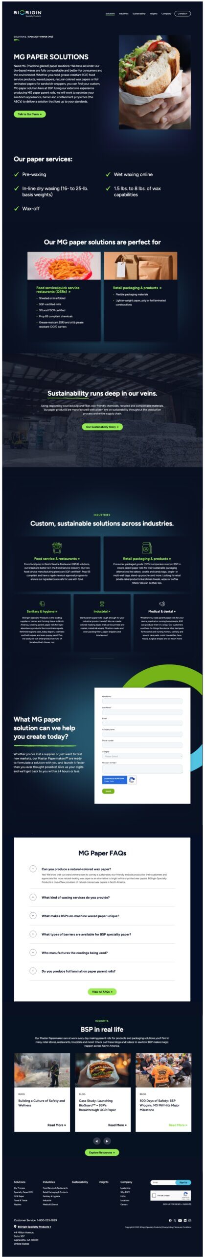 BiOrigin Specialty Products came to Bop Design with a big problem: their B2B website wasn’t telling the right story, so visitors misunderstood what they did. Buyers assumed BiOrigin produced finished products, when in fact they specialized in manufacturing the paper rolls that brands use to create items like hospital drapes and sandwich wraps. As a result, they weren’t generating the high-quality leads they needed to grow. They needed a B2B website design that delivered clarity and an SEO strategy to reach the right decision-makers and increase website conversions.